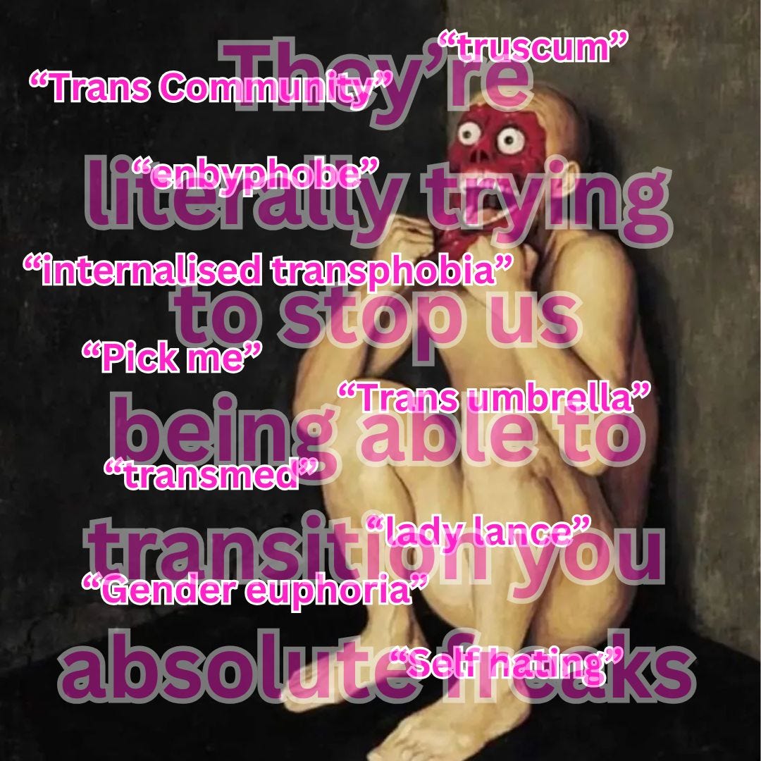 This is a super important conversation. It’s difficult to discuss because of all the transmedicalist accusations and inability for so many to listen when it means any sort of division of “the community,” or an inability to understand what it means when someone says “fuck trans joy.” So many fail to realize is that we’ve all been further marginalized by the focus on transgender rhetoric and not leaving space for transsexual conversations. I see myself as both transgender and transsexual — but the transgender part is merely a circumstance of my environment and nurture having forced my gender to develop unnaturally into a pseudo-masculine creature. And that was easy to fix — I let go of the expectations put on me, let my hair grow, changed my wardrobe and started wearing makeup. Amongst a few other things. But overall, it was a transition I was able to make in an incredibly short amount of time, and I perform my gender extremely well. The transsexual part is what brings me daily distress, and that’s because so many things about my body still aren’t right. My hormones still aren’t where they should be — I’m always fatigued and my head still isn’t as clear as I imagine it should be if I had enough estrogen in my system. I wasn’t capped at 1-2mg/day for years, but my providers have been reticent to adjust my dosage because “your body is feminizing just fine.” BUT WHAT ABOUT MY MENTAL HEALTH?! I’m seeking surgery — I have dates for FFS & sexual reassignment, and hopefully those will lower some of the dysphoria I face on a daily basis. But no matter what I do, no matter how right I get with myself, this world will always see me as something I am not — a man who plays the part of a woman. They will always assign us the trans adjective before the woman adjective, even though hierarchically it should be the other way around. And that will always trigger both my gender and sexual dysphoria. Gender because why am I not accepted when I do feminine gender better than most cis women?? And sexual because my body wasn’t built right in the womb, and no matter how I change it, people still want to claim it’s a male body. We talk so much about the “gender spectrum” but what about the sexual spectrum?? To claim that sex is immutable and only exists on one extreme or another disregards the existence of intersex people and sexual transition at the same time. Ugh, it’s all so frustrating. I don’t even know where I’m going with this, or if there is a point I’m trying to make other than it doesn’t matter what we do or how we act, society doesn’t want to see us as anything but strange, radical creatures who claim to be something we are not. They fail to recognize that their own sex and gender is something that they can (and do) modify, and that we are all fundamentally the same. They can’t face the reality of human existence, and we pay the price for their ignorance.